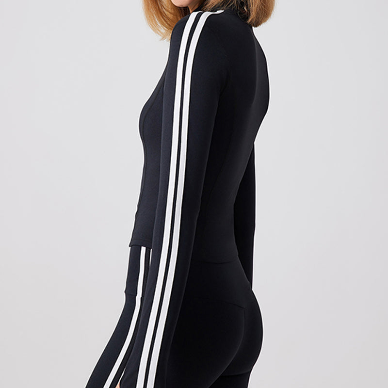 STYLOVÝ RETRO PRUHOVANÝ DESIGN: Objevte klasickou estetiku s výrazným retro pruhovaným designem. Tyto bílé pruhy na rukávech bundy a bocích kalhot dodávají sportovní a zároveň elegantní nádech. Tento detail zvyšuje vizuální přitažlivost celé sady.